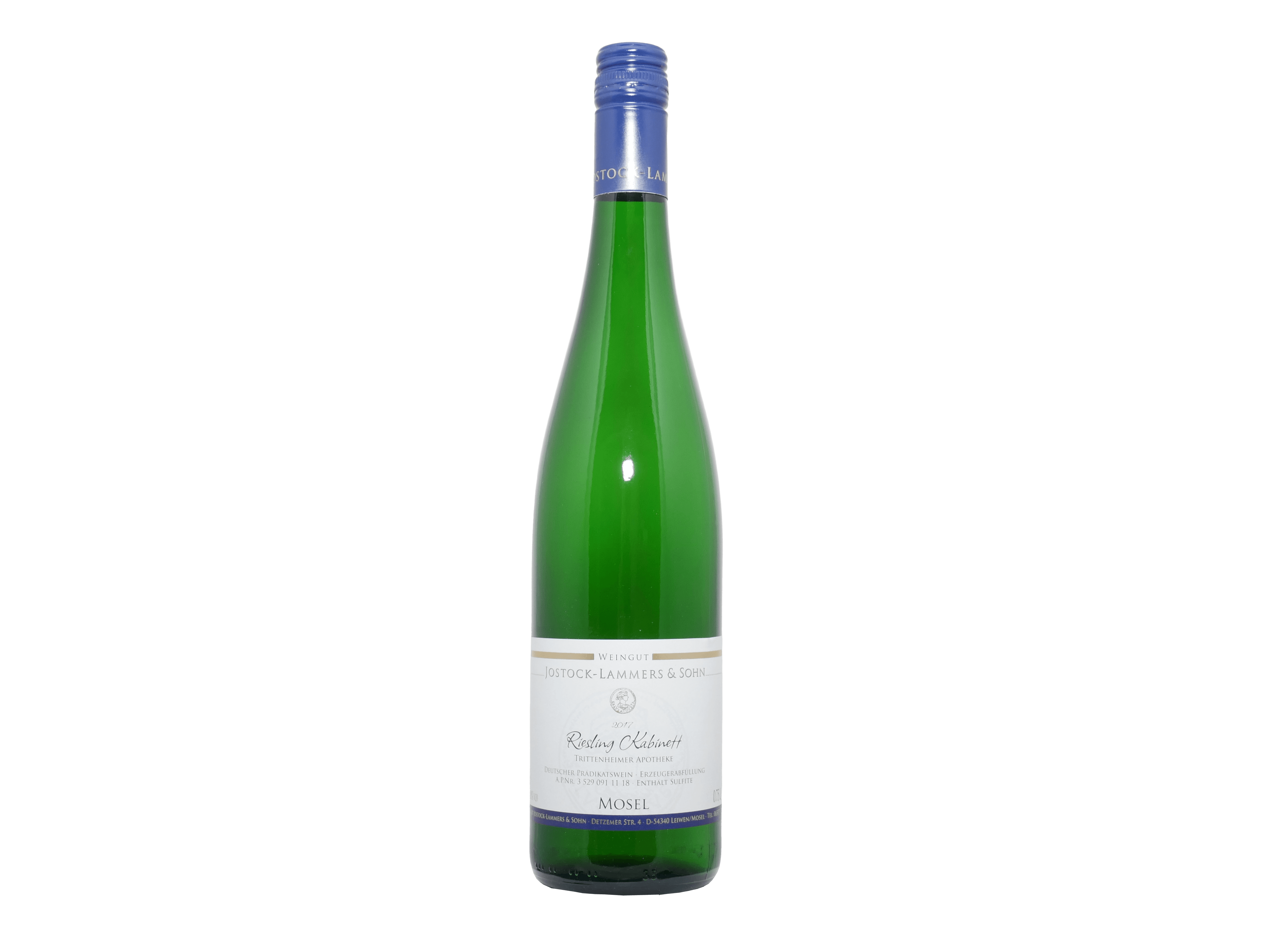 Der Riesling Kabinett wird in der Trittenheimer Apotheke angebaut. Die Steillage fordert den Winzer und die Rebe. Das massive Schiefergestein hat hier eine blaue Färbung. Die Wurzeln der Rebe ringen sich durch das Gestein um an Wasser zu gelangen. Dabei nehmen sie die Mineralien des Gesteins auf.